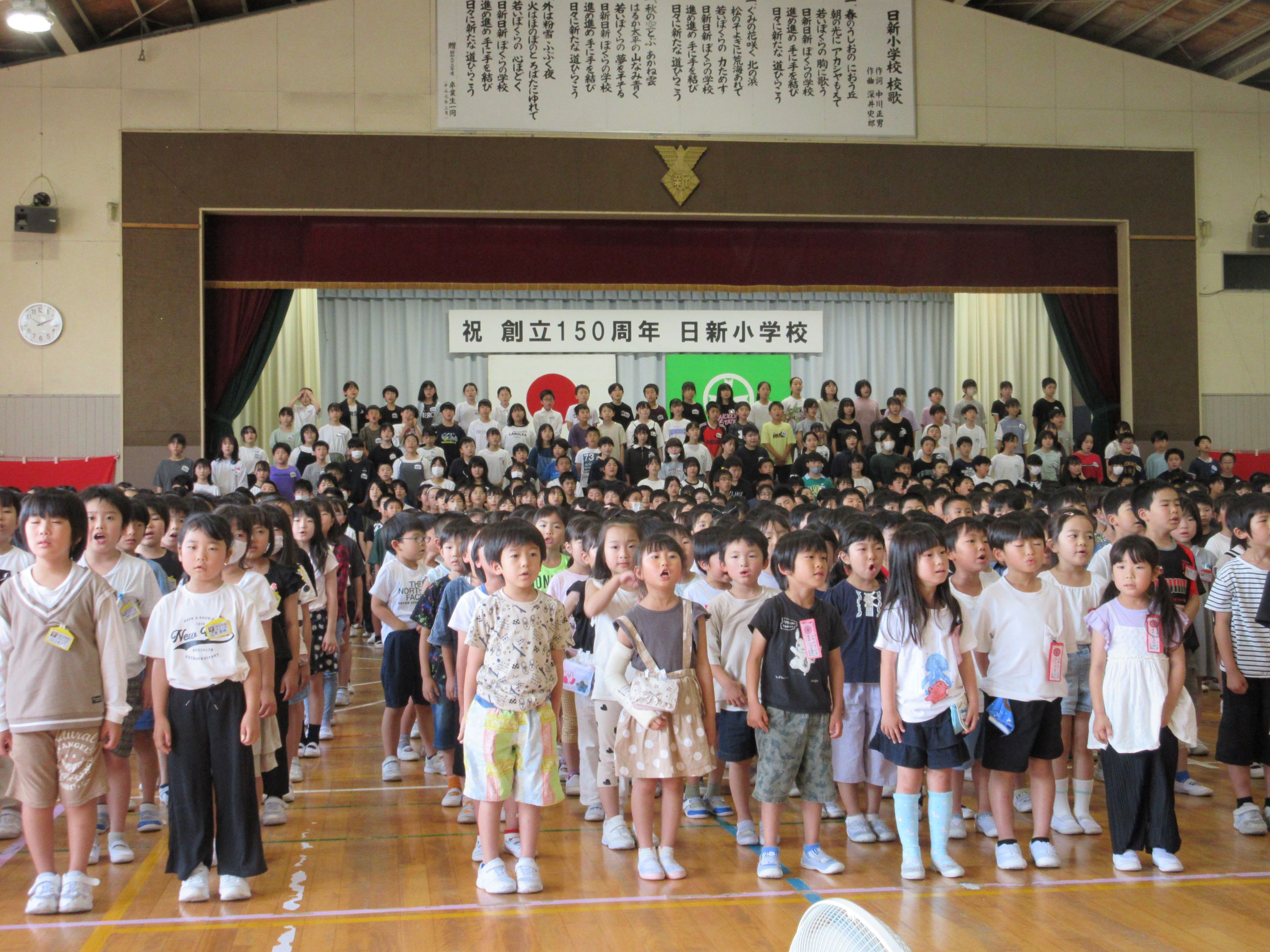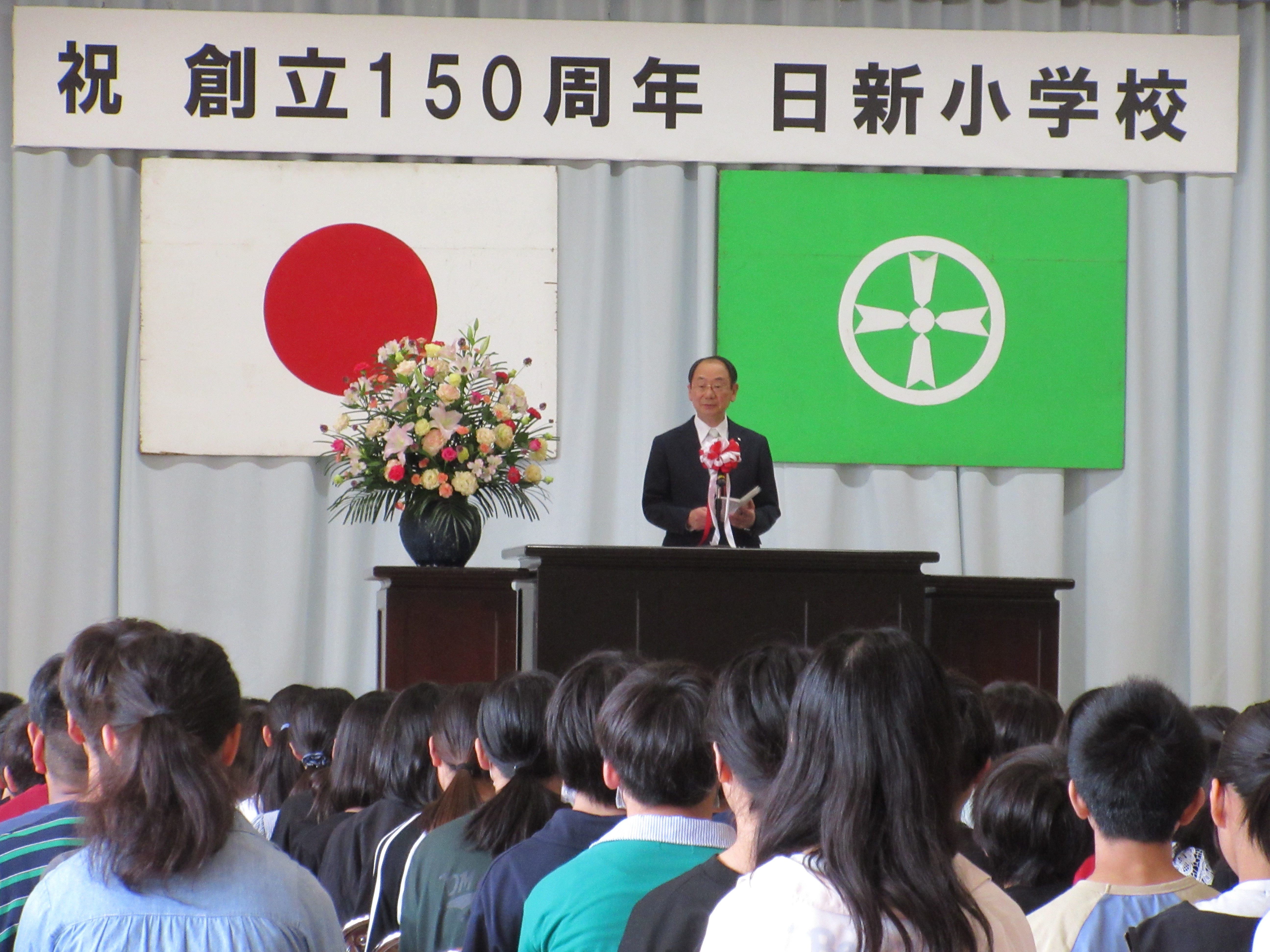 去る7月6日(土)日新小学校の創立150周年記念式典が1年遅れではありますが同校体育館において朝9時から開催 されました。