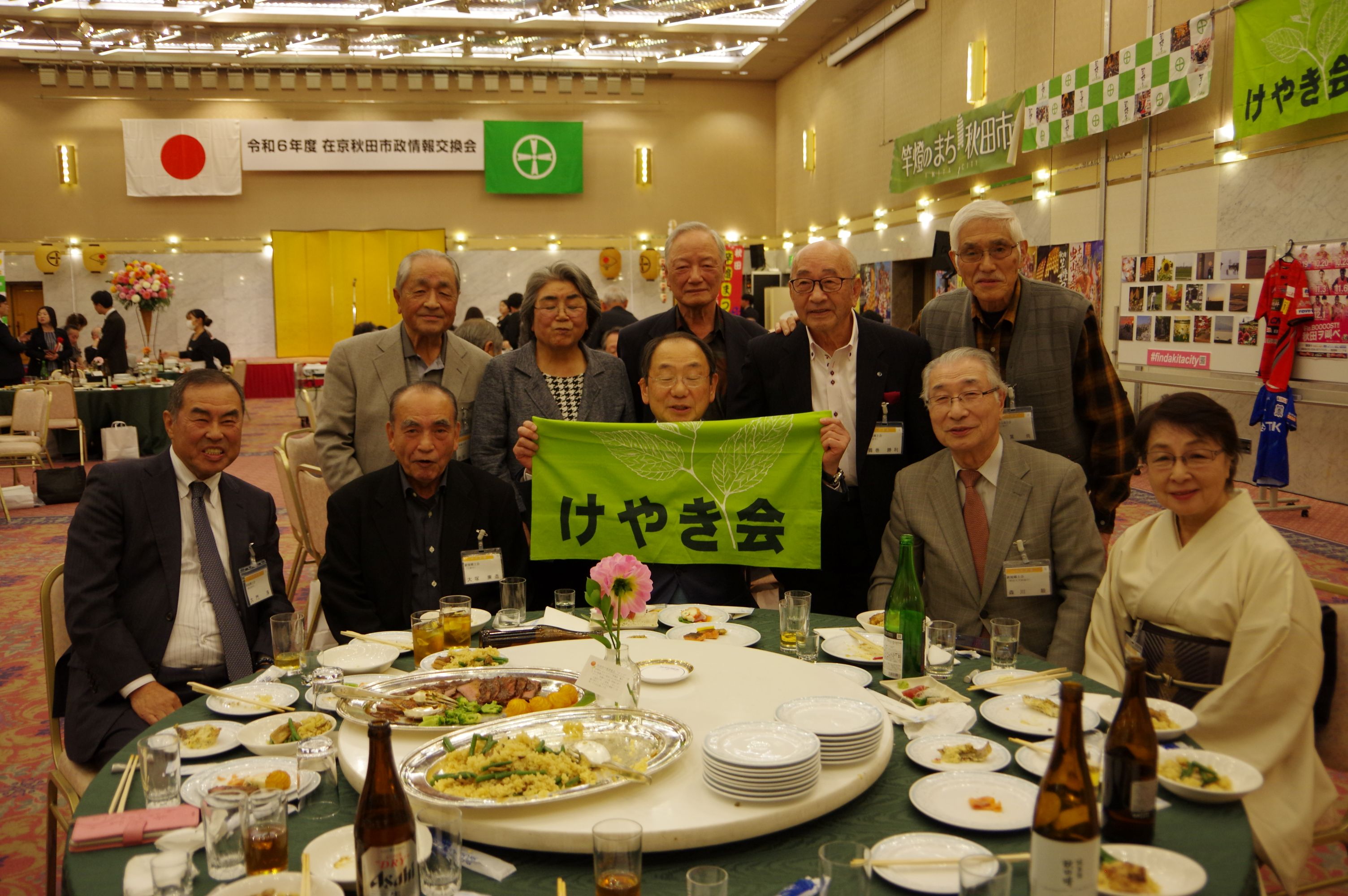 第一部は穂積 志秋田市長の市政報告の後第二部は懇親会となり各テーブルとの交歓。